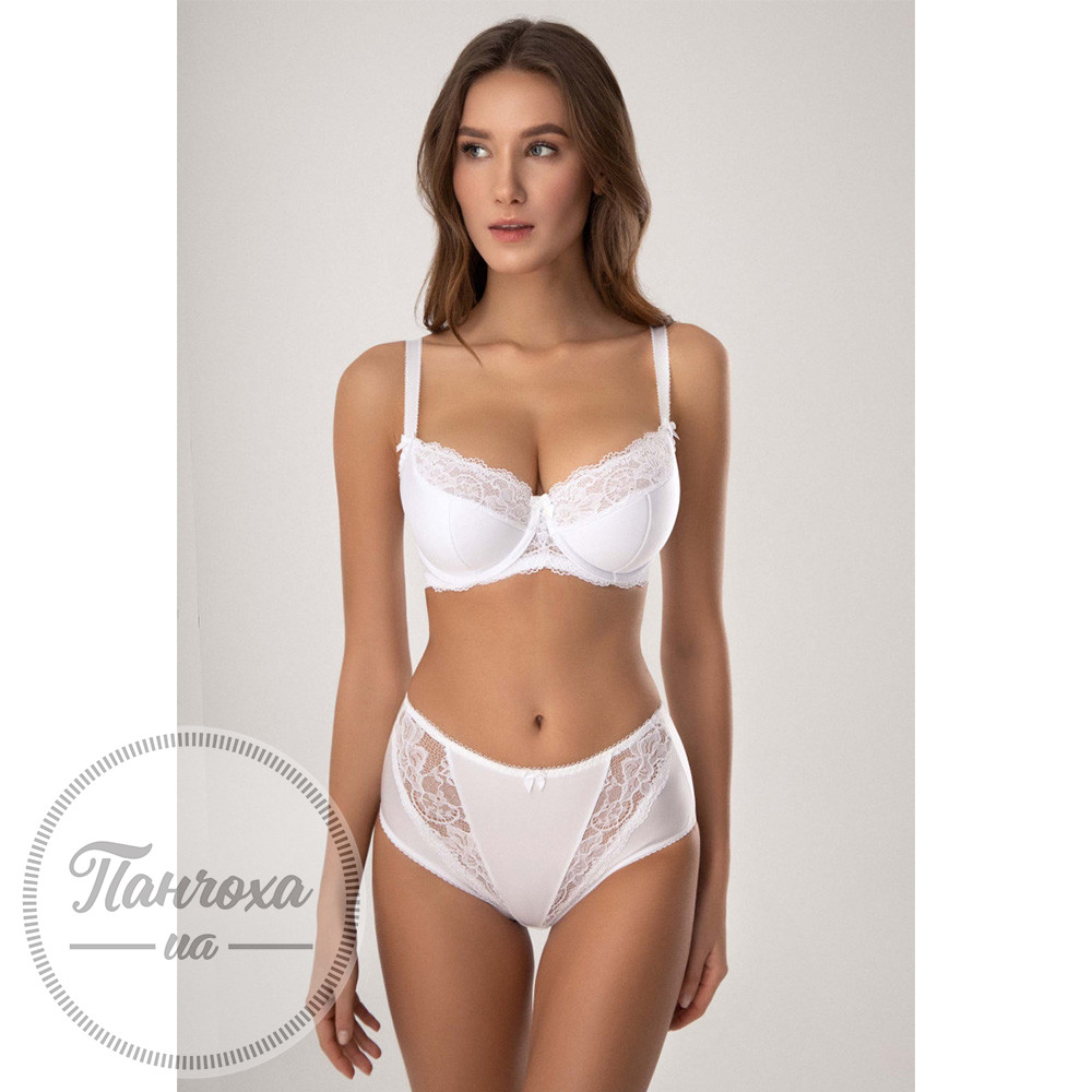 Зручний напівм'який бюстгалтер з мереживними елементами підтримує пишні груди та надає їм спокусливих форм.Широкі бретелі. Внутрішня деталь чашки бавовняна.