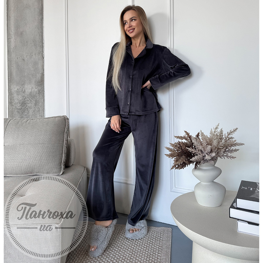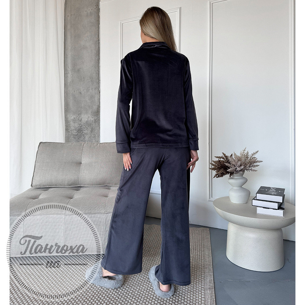Домашній велюровий комплект. Комплект складається з сорочки на гудзиках з довгим рукавом та широких штанів.