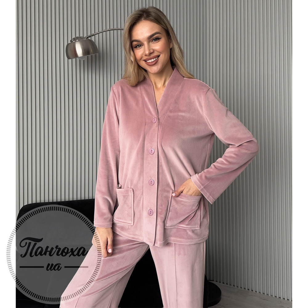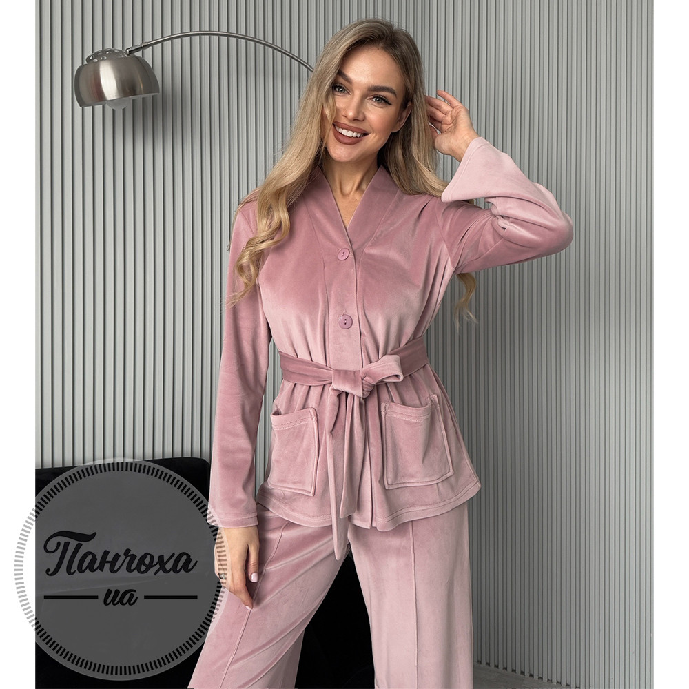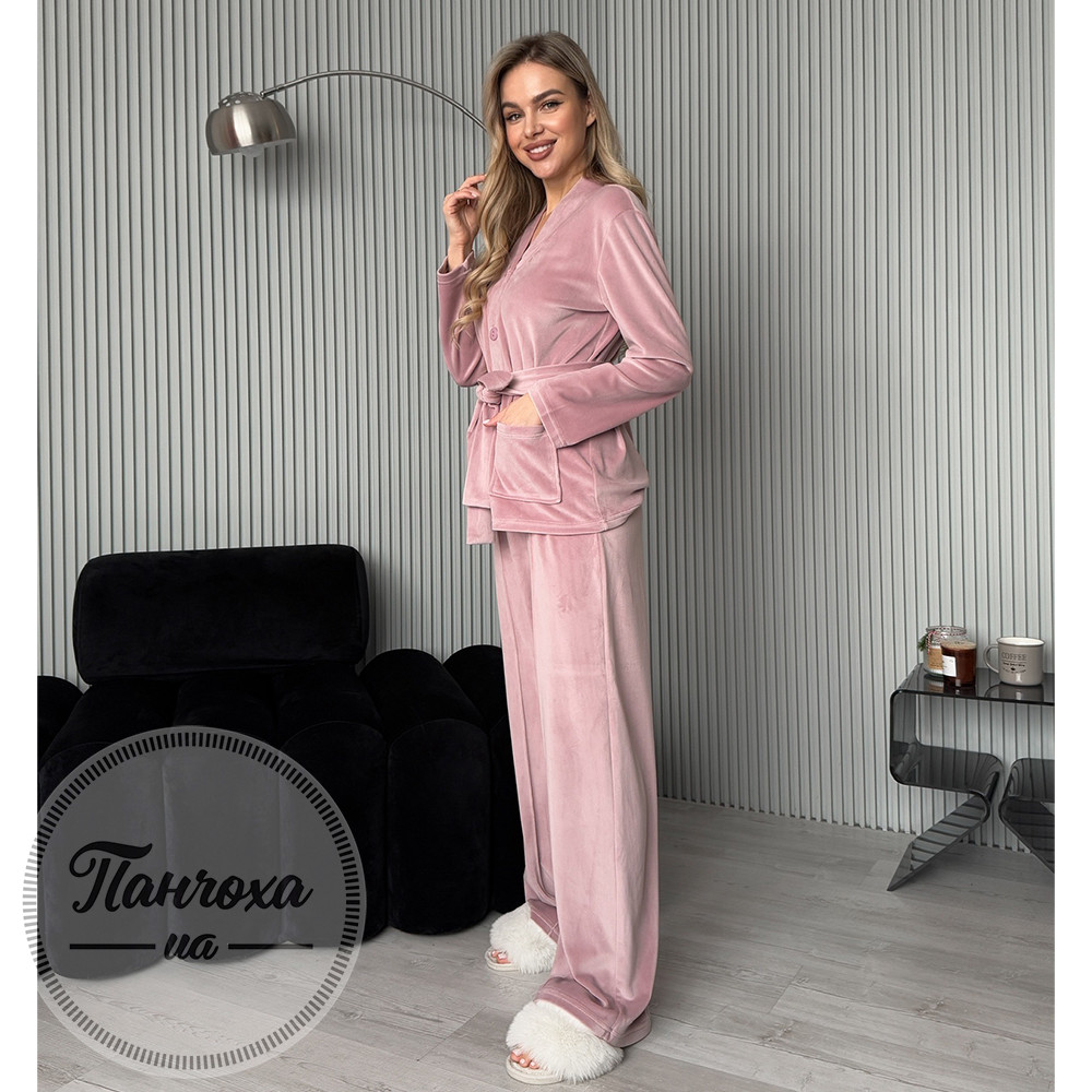 Домашній велюровий комплект. Комплект складається з сорочки на гудзиках з довгим рукавом з поясом та широких штанів.