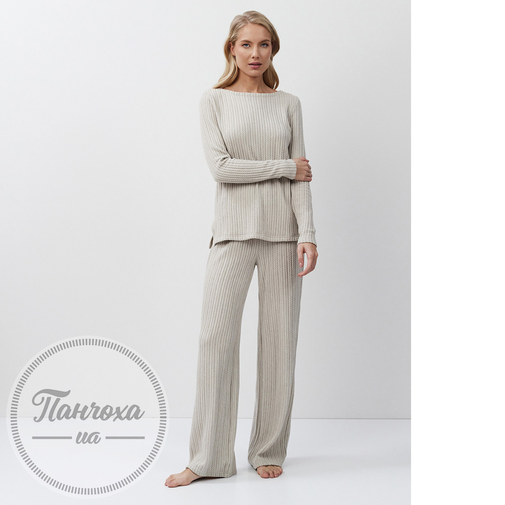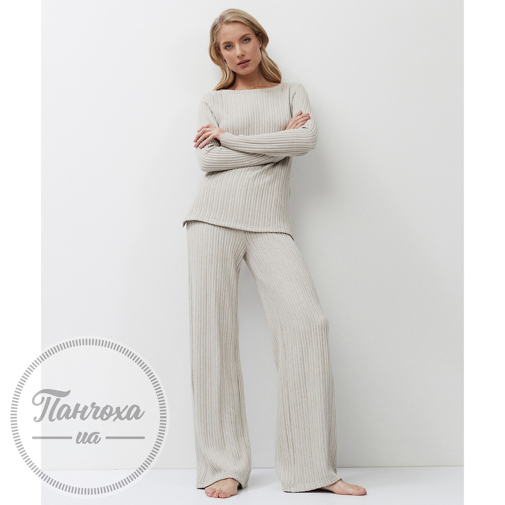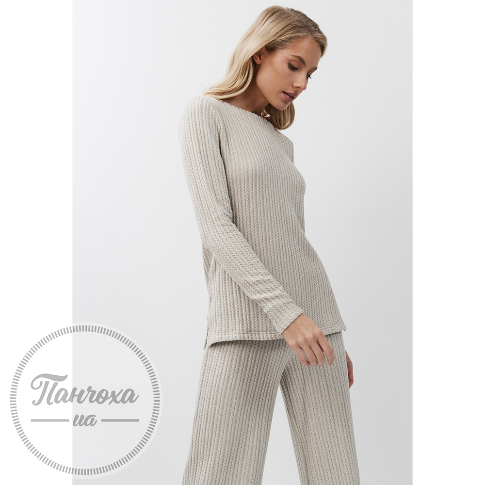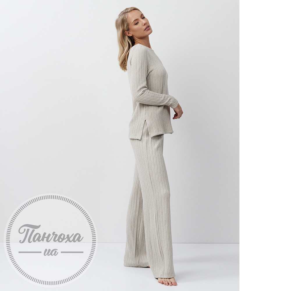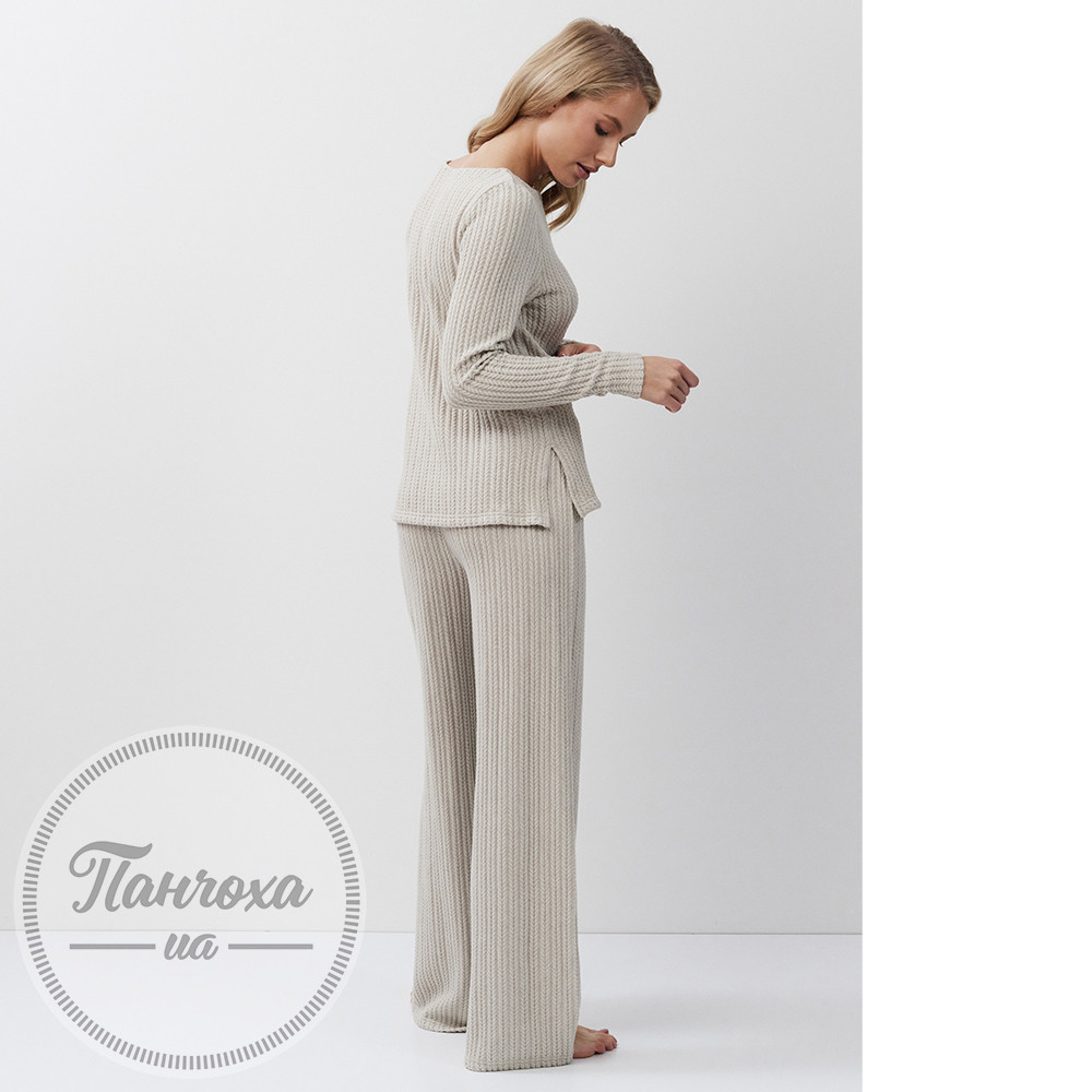 Невимушено стильний домашній комплект із в’язаною текстурою.Виготовлений із м’якої суміші віскози та поліестеру, що забезпечує комфорт та приємне відчуття на тілі.Верх — вільного крою з човникоподібним вирізом горловини та елегантними бічними розрізами для свободи рухів.Штани крою wide-leg із гарним струмуванням силуету та практичними бічними кишенями.Зріст моделі 175 см, розмір S.