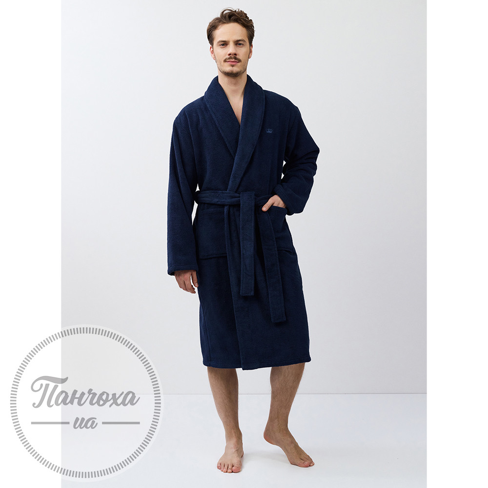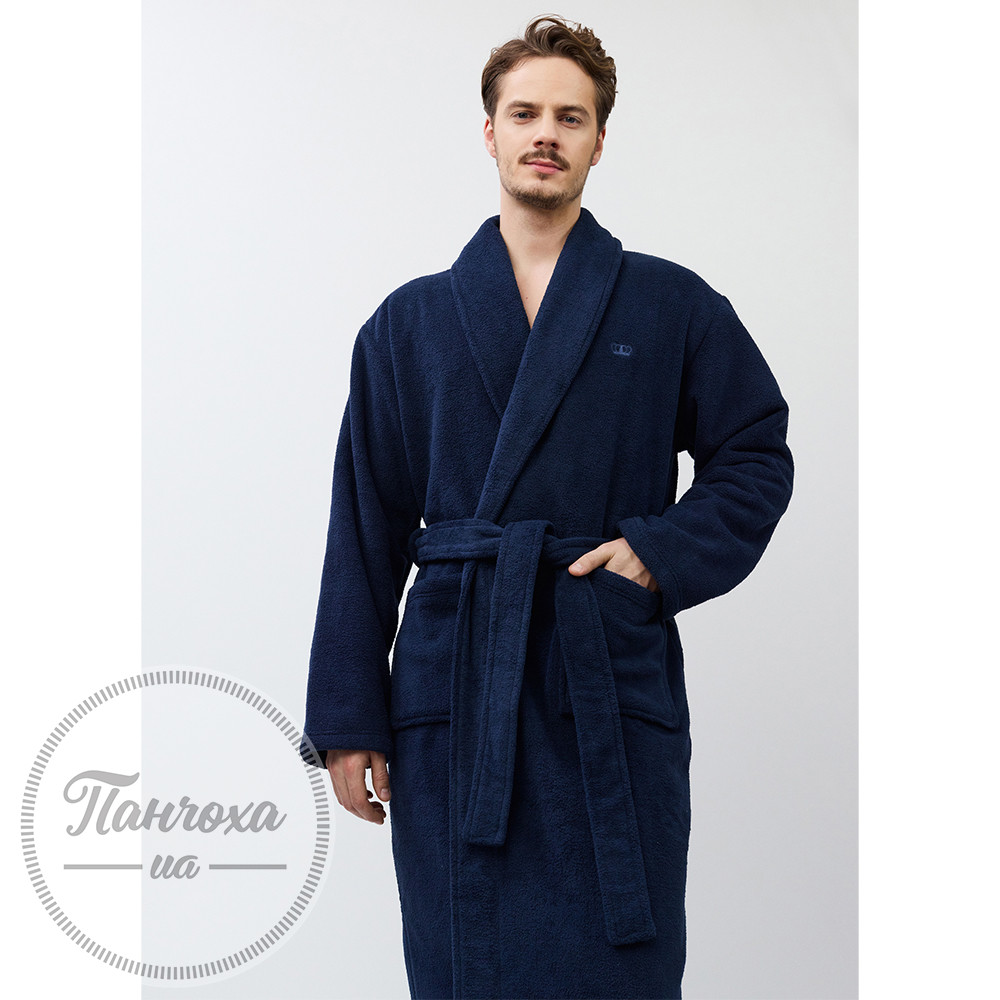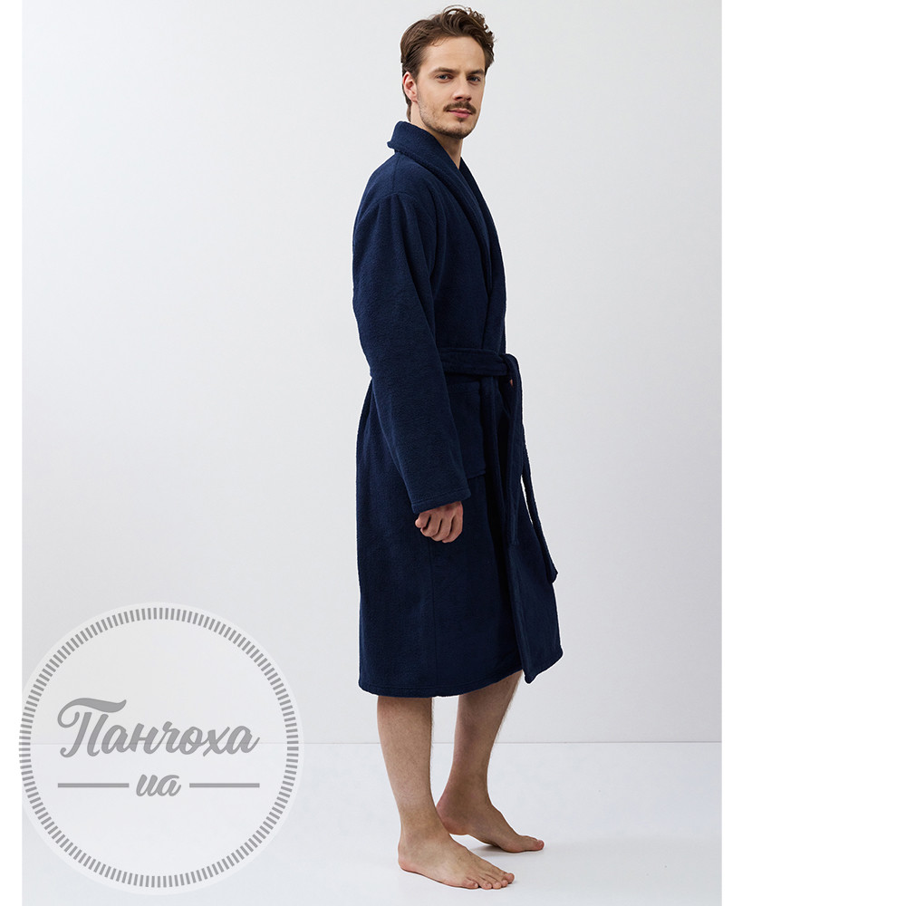 Класичний халат з м'якою махровою текстурою.Виготовлений з щільної поліестерової тканини з плюшевою махровою текстурою, що забезпечує максимальну м'якість та комфорт.Колір - насичений темно-синій.