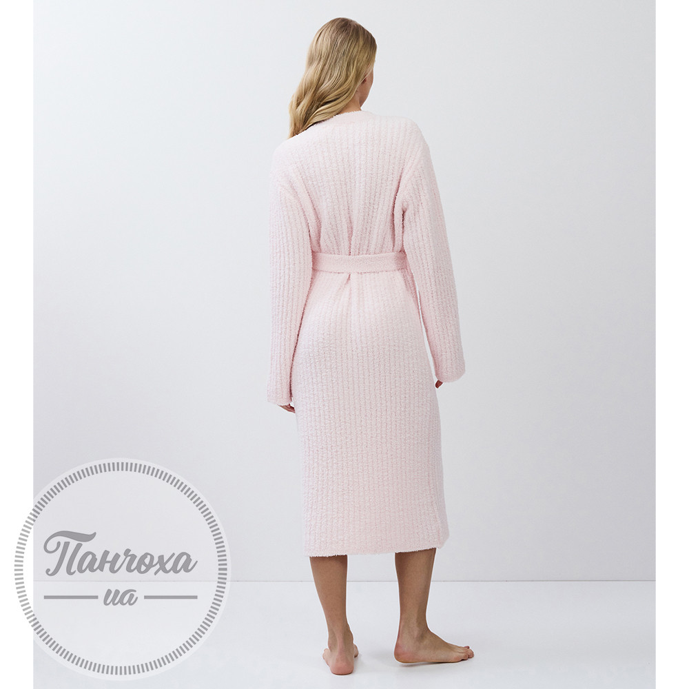Колір - пастельно-рожевий.Має подовжені рукава.Розроблений з ефектом відсутності коміра для елегантного та сучасного вигляду.Приховані бічні кишені для безшовного покриття.Включає пояс з тканини в тон для регулювання посадки.Дизайн - нижче коліна.Зріст моделі 175 см, розмір S.