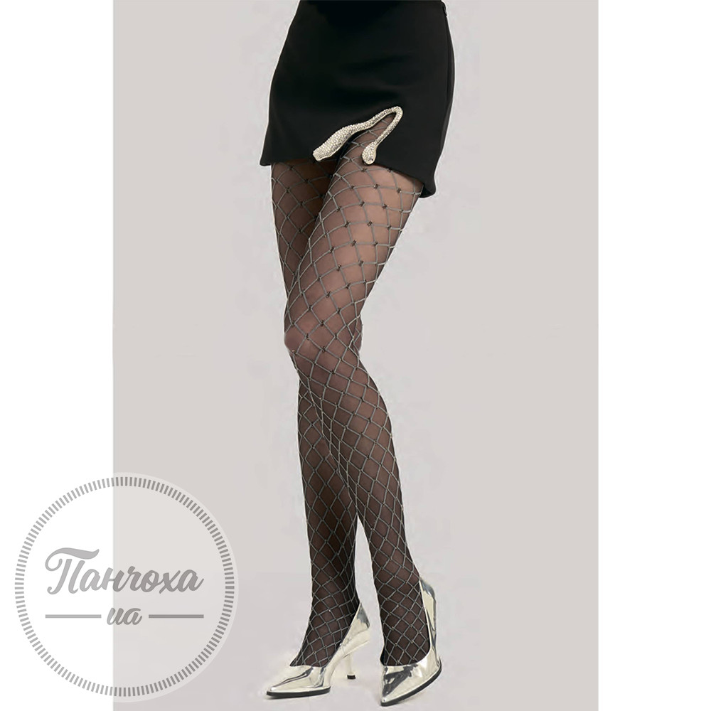 Колготки з біколорним візерунком імітації великої сітки з додаванням люрексу на перехресті ромбів. Щільність: 20 den. Візерунок створює стильний акцент і красиво підкреслює ніжки, а легка прозора основа робить колготки універсальними для різних образів — від повсякденних до більш святкових. Ідеальний варіант, коли хочеться додати в образ трохи сяйва та витонченості.