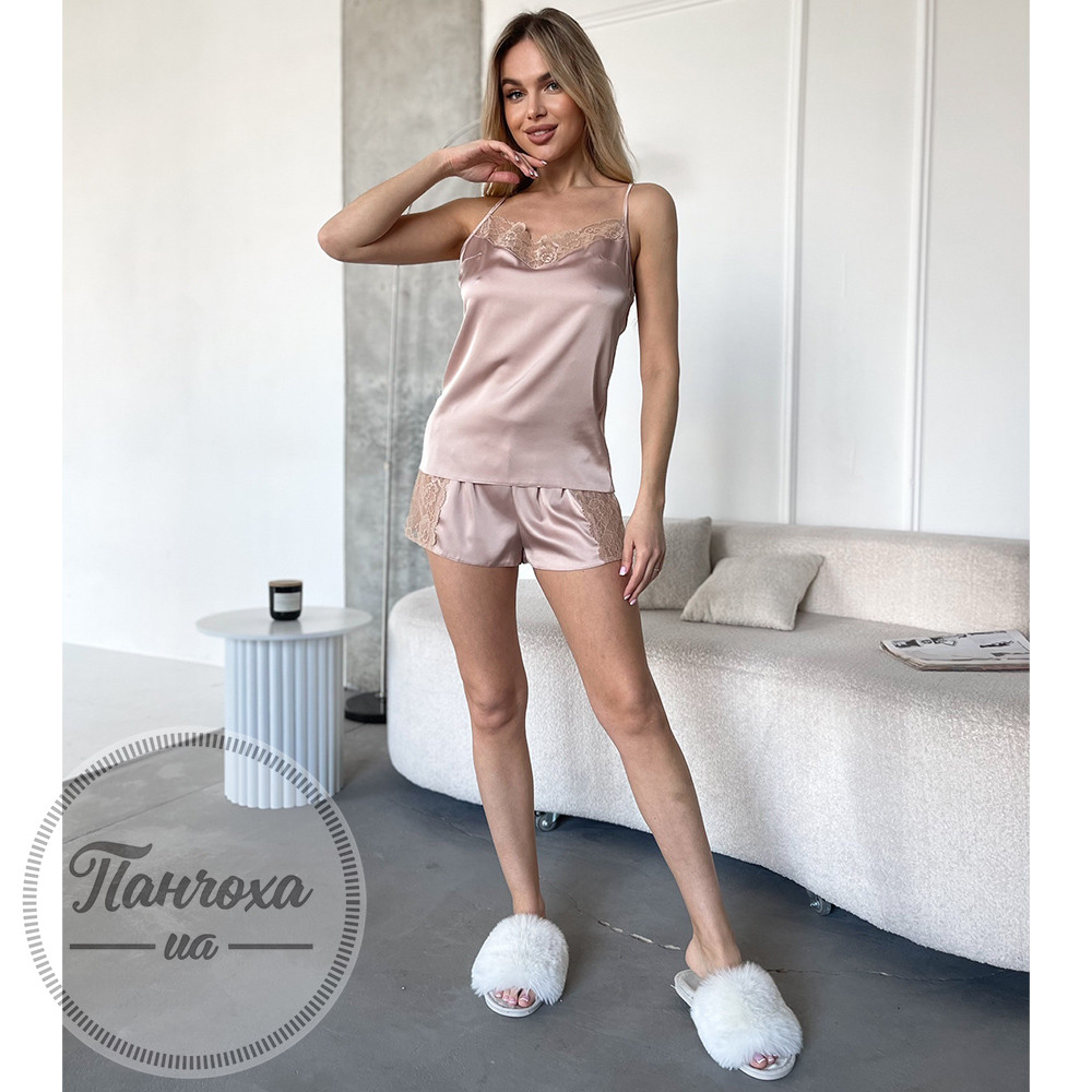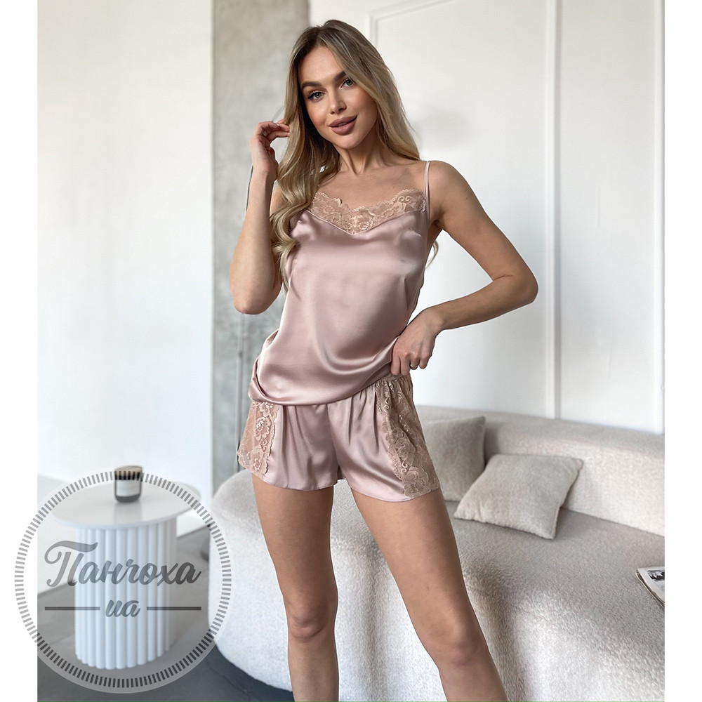 Вишуканий та романтичний жіночий комплект з прохолодного та ніжного шовку, тонкі регульовані бретелі. До комплекту входить майка на тонких бретелях та шорти.
