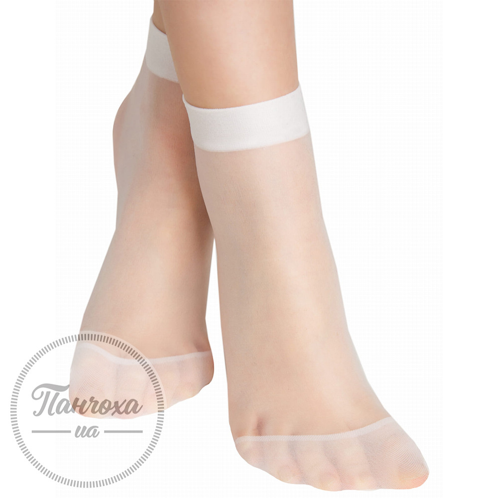 Ніжні, гладенькі, білі шкарпетки з еластичної пряжі 20 DEN від NOVITI, оздоблені нетиснучою манжетою. В упаковці 2 пари.