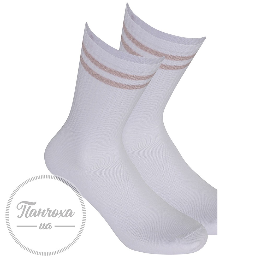 Шкарпетки жіночі WOLA (високі в смужку-люрекс) 994 р.36-38 Білий-рожева смужка