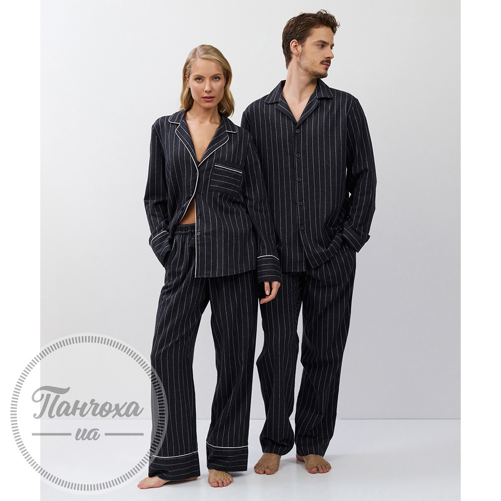 Виготовлений із м’якої та теплої бавовняної фланелі, що забезпечує комфорт і повітропроникність.Колір — насичений сірий із тонкими білими смужками.