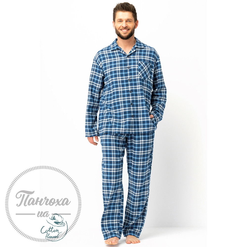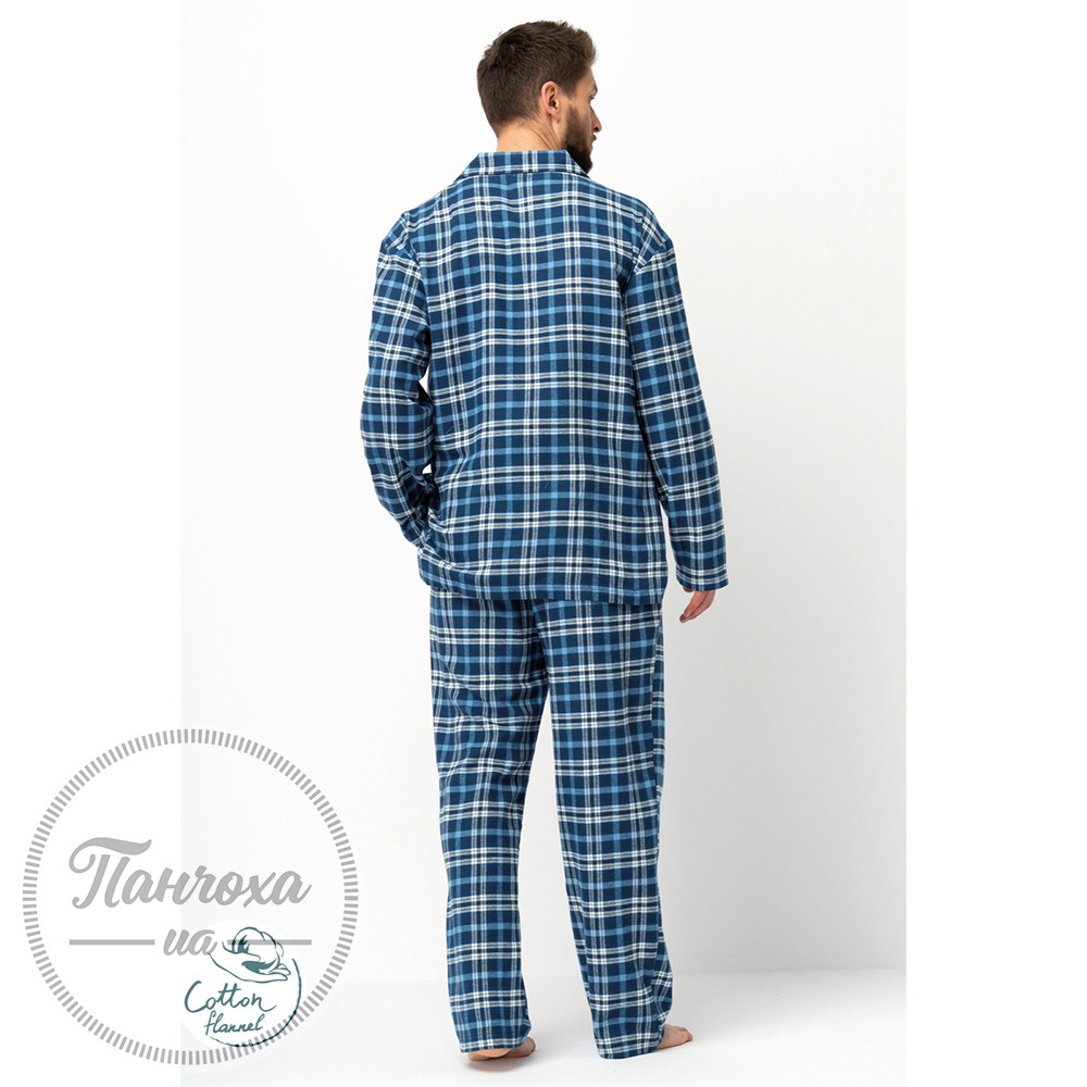 Зручна бавовняна фланелева чоловіча піжама з довгим рукавом. Довгі штани вільного покрою з кишенями.