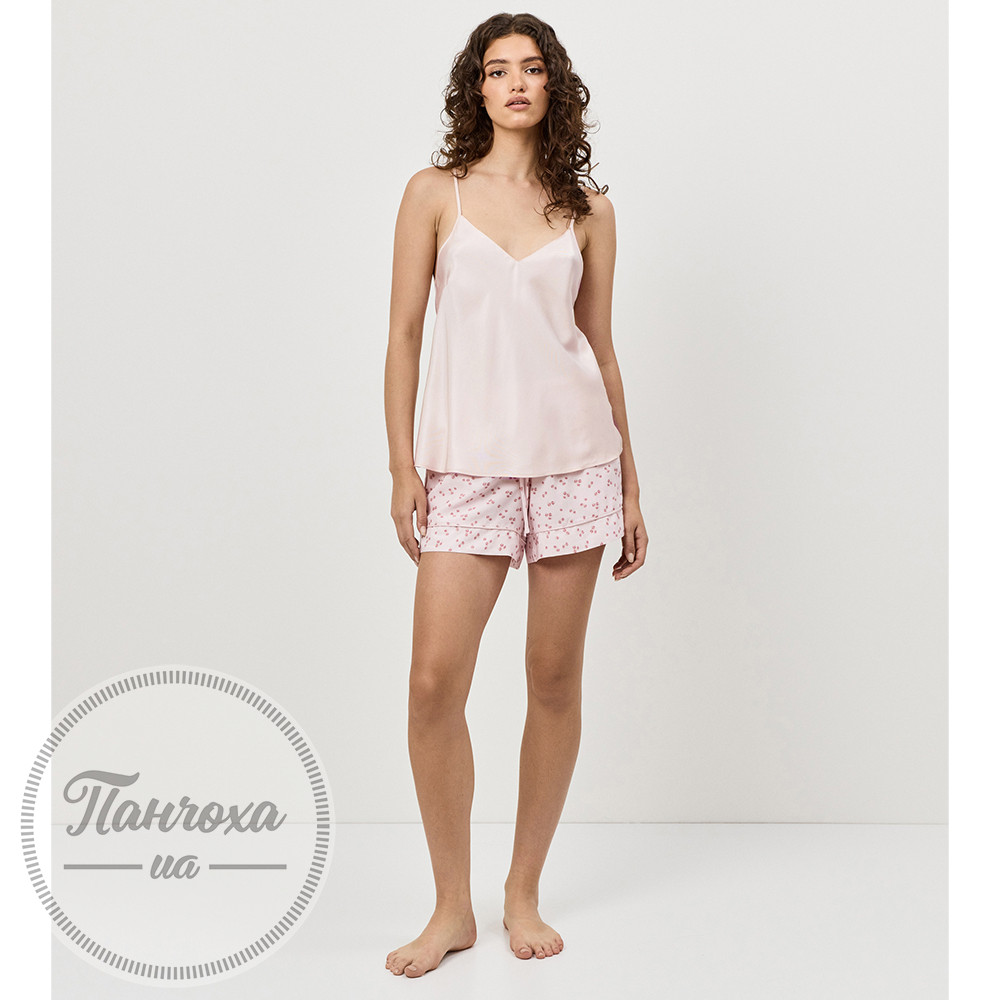 М'який та повітряний, цей двоколірний піжамний комплект поєднує комфорт з витонченою жіночністю.Комплект включає майку з регульованими бретельками та шорти вільного крою.Виготовлено з легких тканих тканин: верх складається з 67% віскози та 33% поліестеру, а шорти - зі 100% віскози - повітропроникні та плавно драпіруються.Виконано з ніжним квітковим принтом для витонченого, літнього відчуття.Майка має чіткий виріз горловини та легкий силует з ніжними регульованими бретельками для індивідуальної посадки.