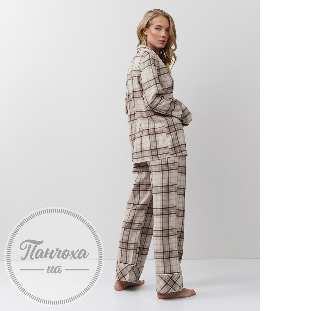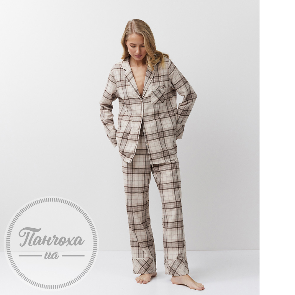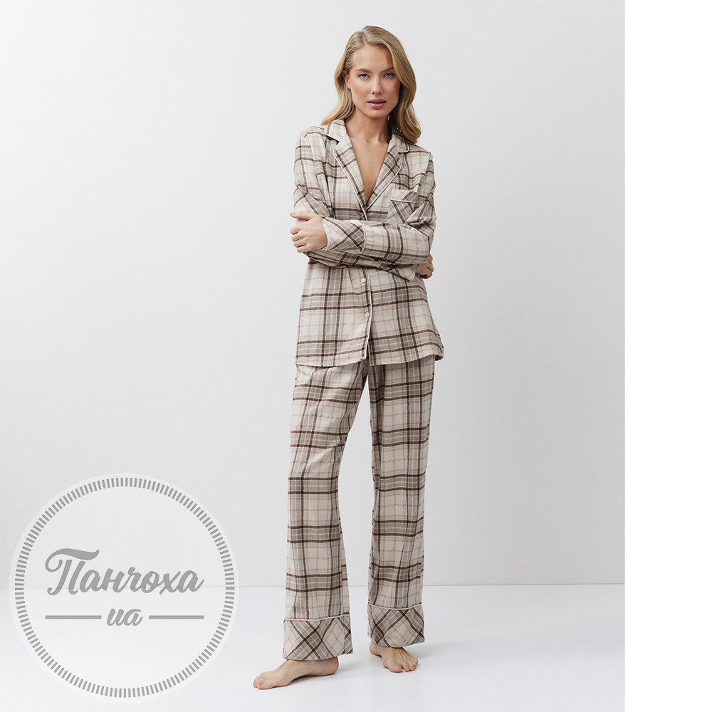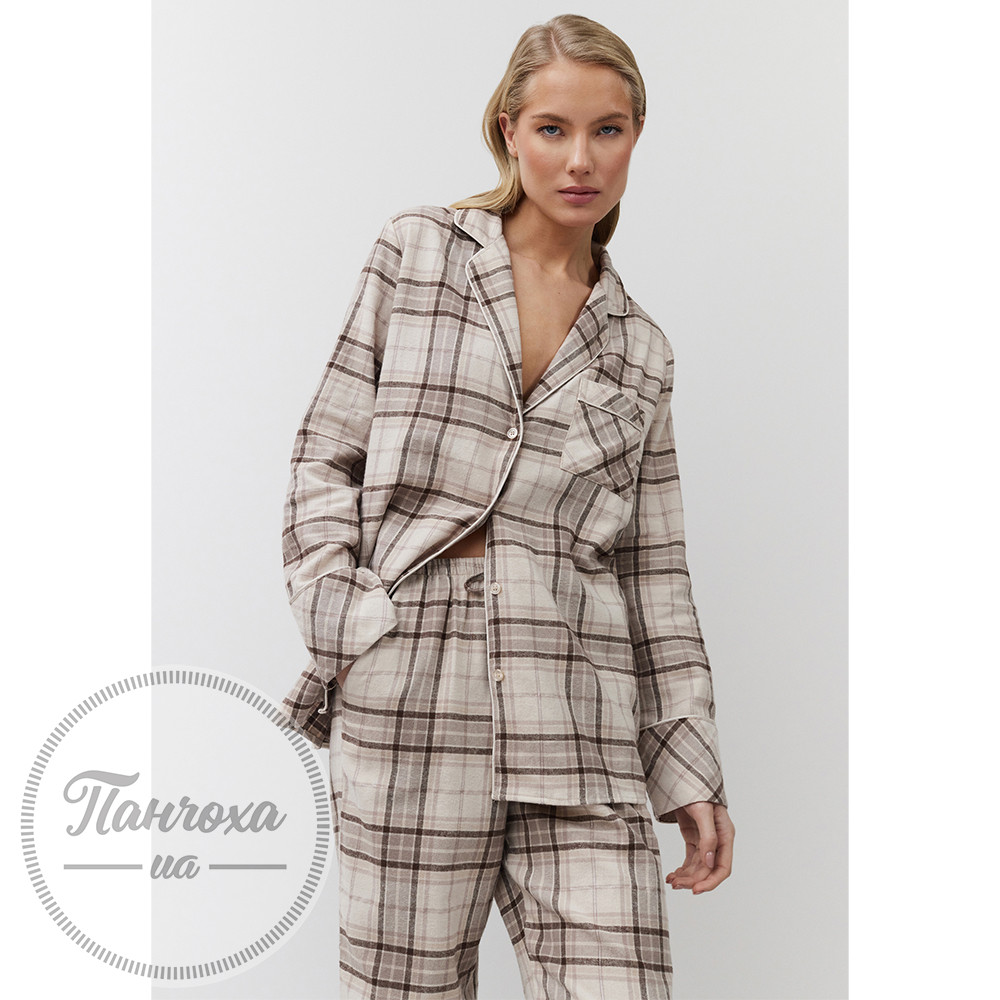 Класичний піжамний комплект у приглушених природних тонах зі штанами.