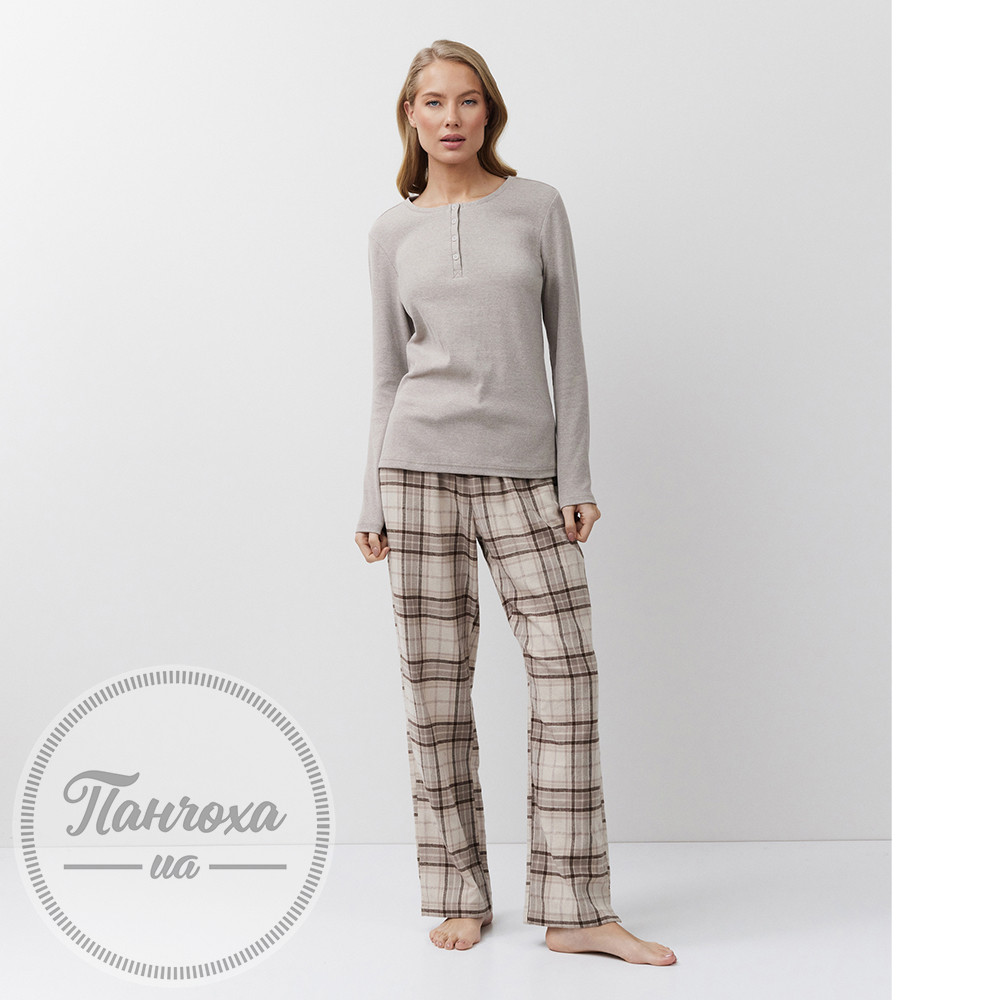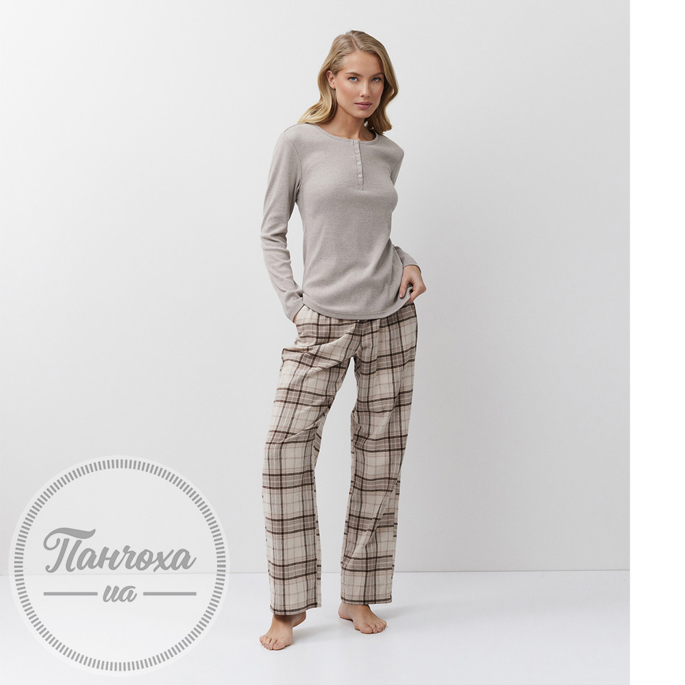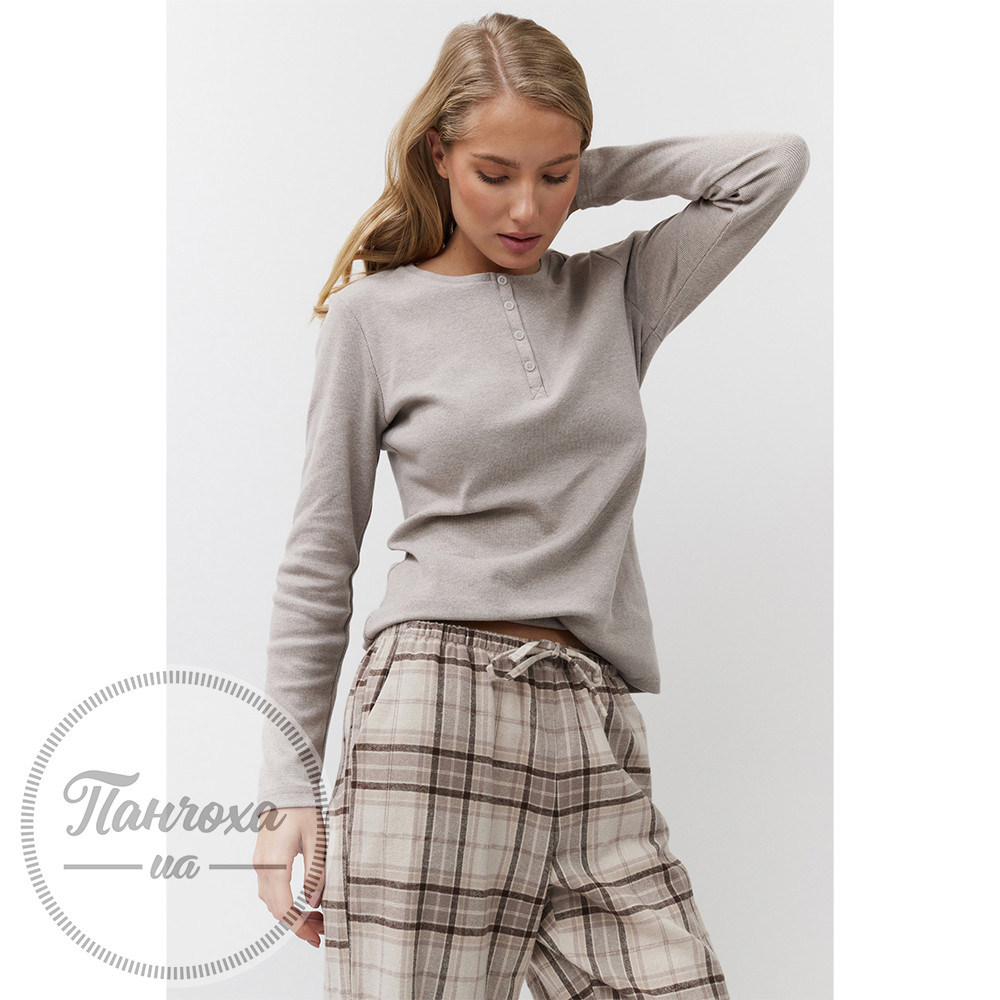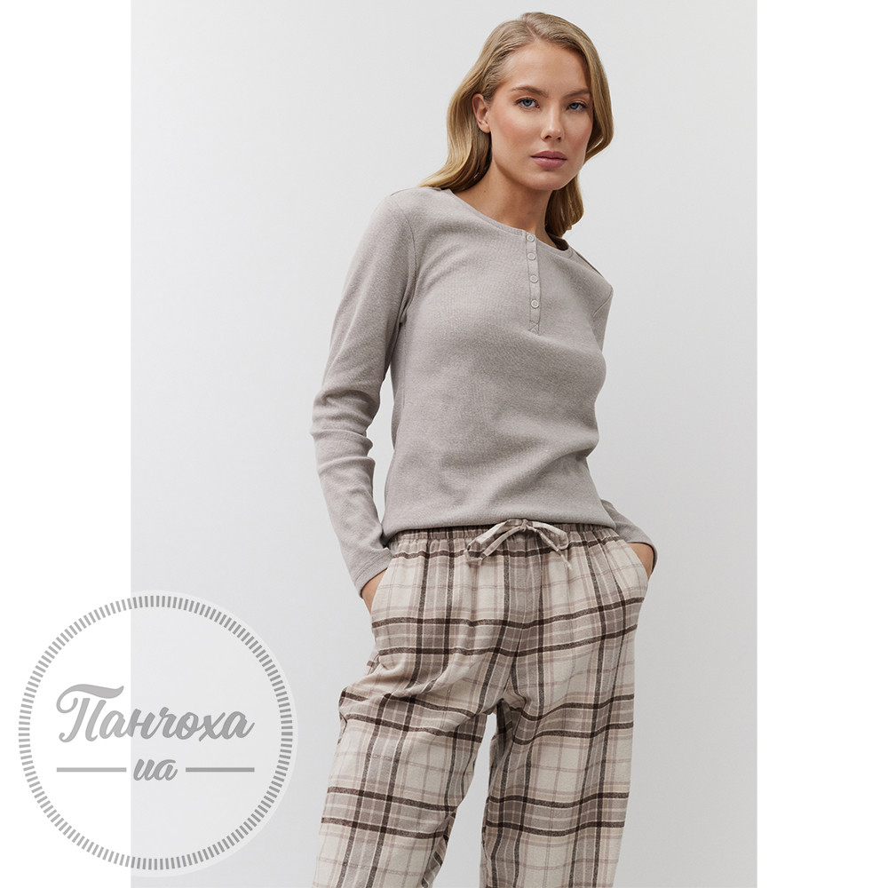 Стильний та зручний піжамний комплект зі штанами. Верх виготовлений з м'якої та еластичної бавовняної вафельної тканини. Штани виготовлені з бавовняної фланелі.