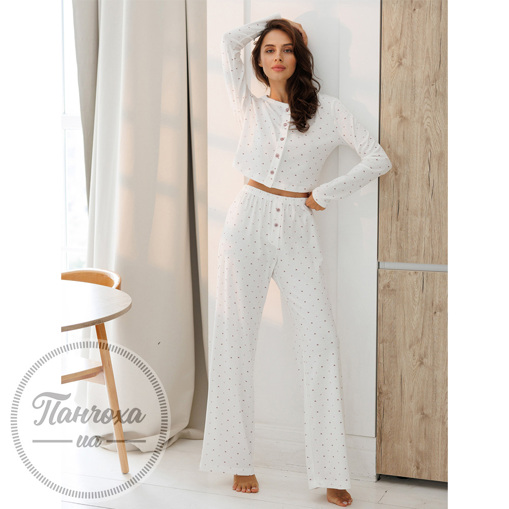 100% cotton. Піжама білого кольору створена для прохолодніших днів і затишних вихідних. М’який джемпер з округлою горловиною та прямі штани на еластичному поясі формують soft-силует без відчуття «обтягу». Ненав’язливий принт додає характеру, не відволікаючи. Матеріал тканини - бавовна, натуральна, дихає і тримає в комфорті, підтримує приємну температуру. При використанні піжама дає м’якість, свободу, а також - практична у догляді. Неважливо, чи це сон, домашні кіно-вечори, читання або поїздки - ця піжама зіграє роль у кожній ситуації на відмінно. Обирайте цей комплект сміливо, замовляйте онлайн та отримуйте справжню насолоду від відпочинку вдома.