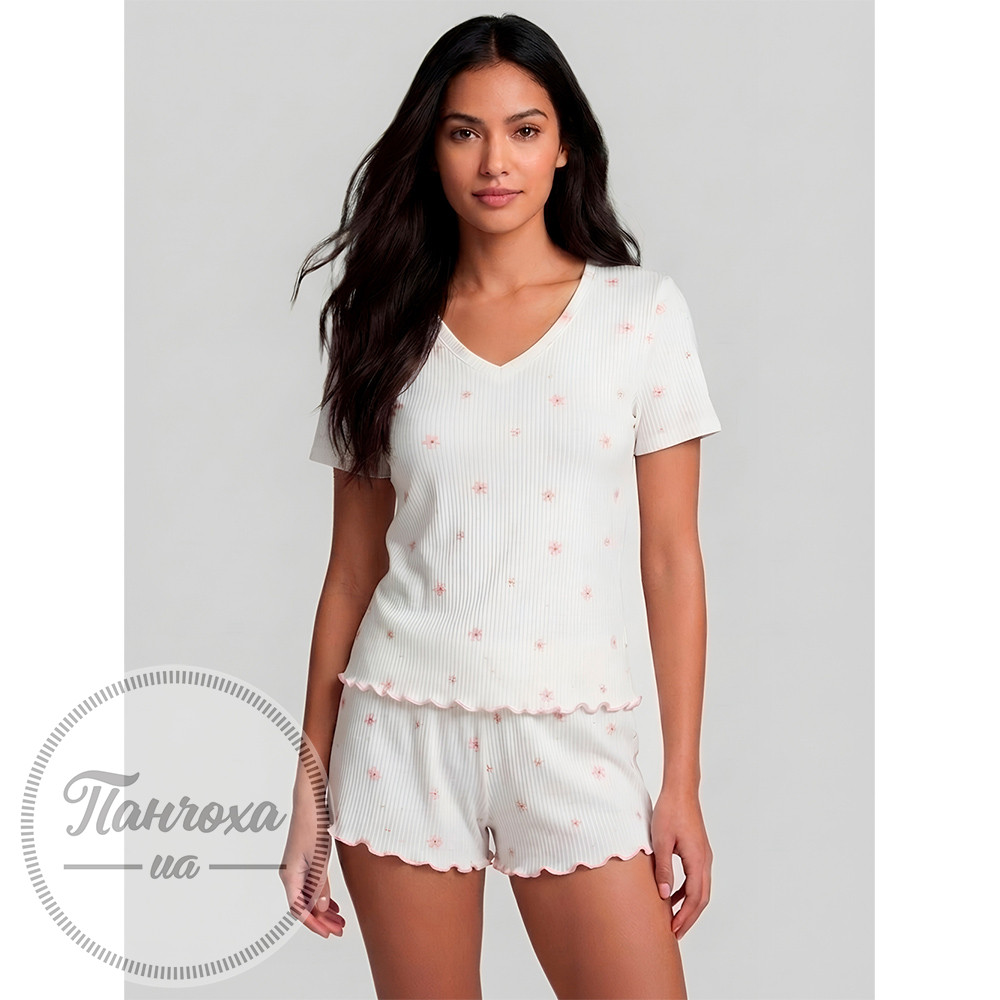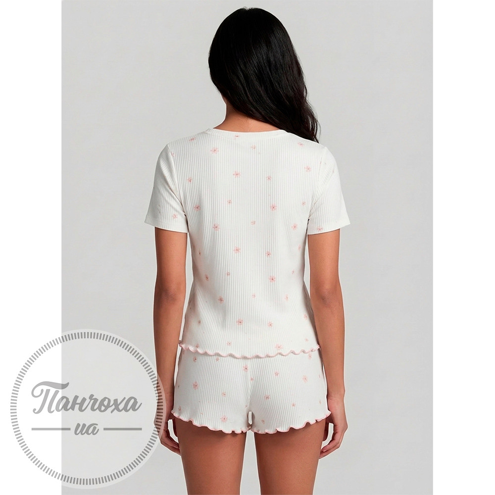 100% cotton. Жіноча піжама це той варіант, який обираєш для себе, коли важливі комфорт і відчуття легкості без зайвого. М’яка рібана приємно лягає по фігурі, не обмежує рухів і дозволяє тілу повністю розслабитися. Натуральна бавовняна тканина добре дихає, не викликає дискомфорту та підходить для щоденного носіння. Білий колір виглядає чисто й акуратно, додає образу свіжості, а делікатний квітковий принт створює спокійний, ненав’язливий настрій. Футболка з коротким рукавом має зручний вільний крій, а шорти з еластичним поясом комфортно сідають по фігурі та не сковують рухів. Акуратні хвилясті краї додають легкого декоративного акценту, роблячи комплект більш цікавим і завершеним. Ця піжама жіноча бавовняна ідеально підходить для сну та відпочинку вдома, коли хочеться простоти й затишку в кожній деталі. Такий комплект легко стає базовим у гардеробі й дарує відчуття комфорту щодня. Обери свій розмір і замовити та купити цю жіночу піжаму можна онлайн, щоб зробити домашній стиль ще приємнішим. Відтінок тканини та принт можуть мати незначні відмінності від зображення на фото через особливості зйомки та індивідуальні налаштування передачі кольору на різних пристроях.