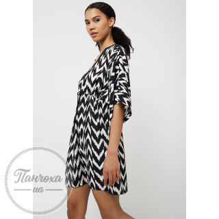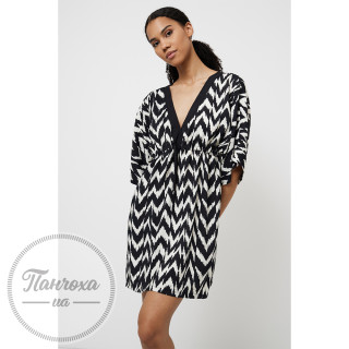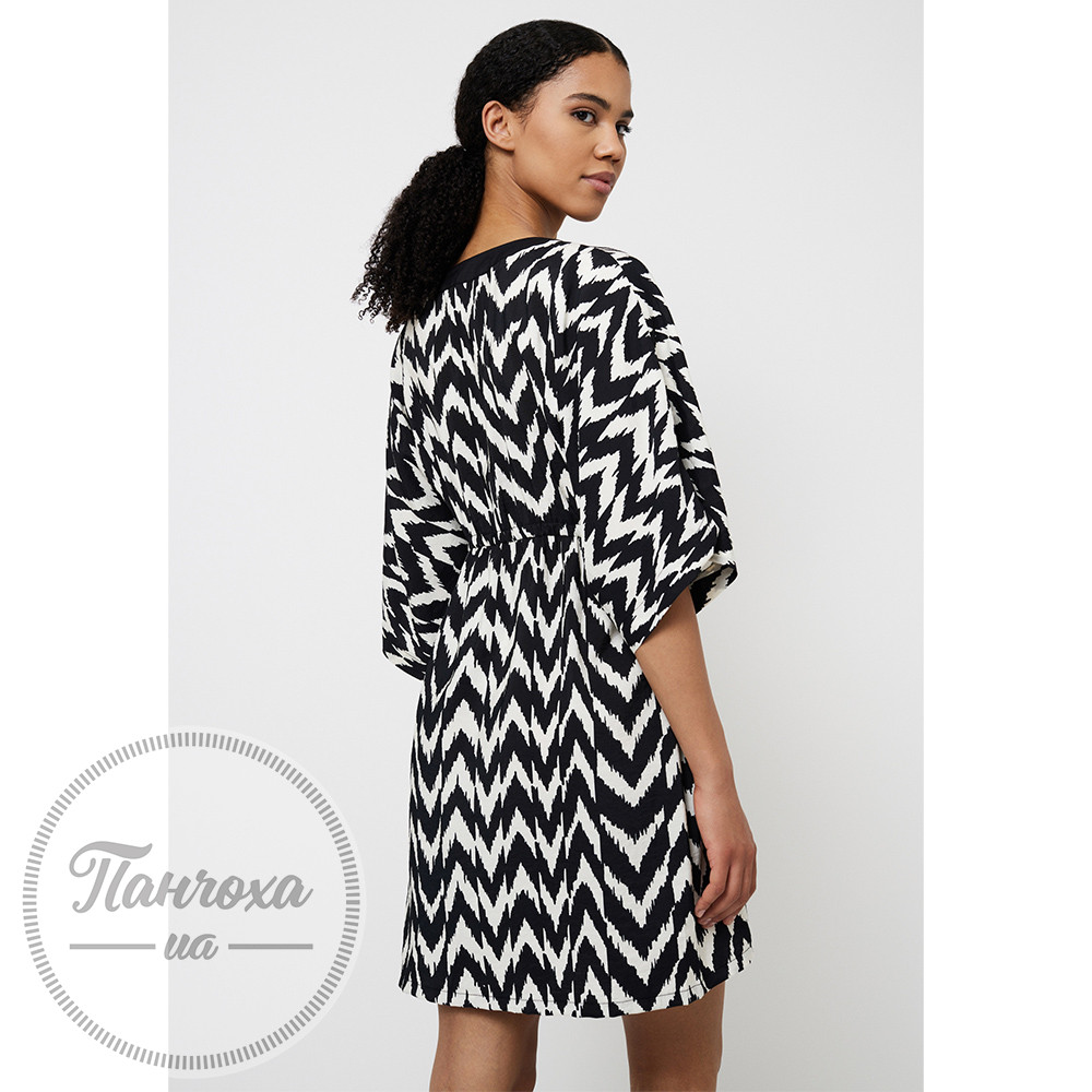 Представляємо сукню Zaila: захоплююче поєднання комфорту та привабливості. Чорно-білий силует у стилі кімоно для позачасової витонченості. Сміливий V-подібний виріз горловини випромінює легку елегантність.Контрастні чорні вставки вздовж горловини, рукавів і пояса.