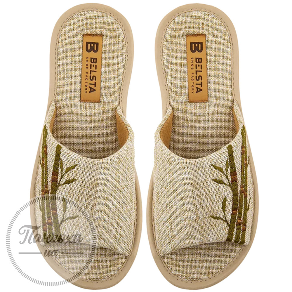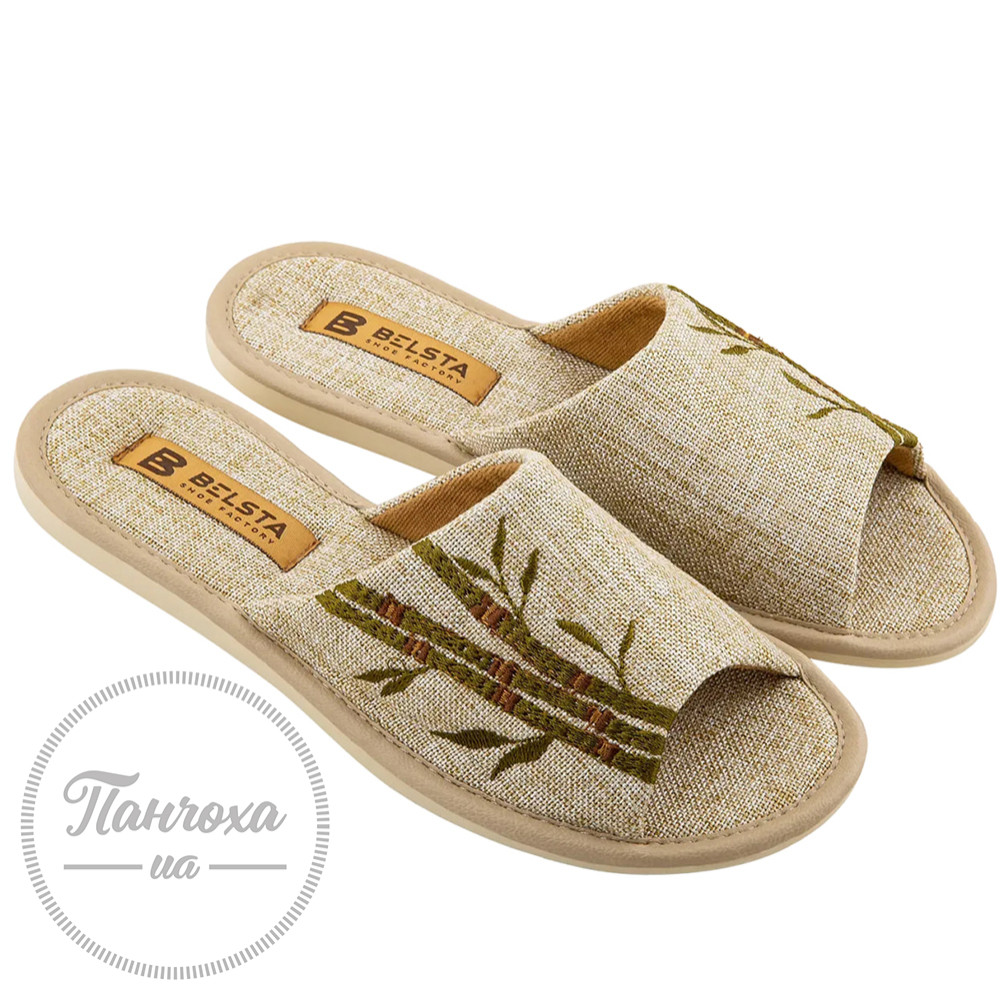 Жіночі відкриті капці БЕЛСТА з бежевого текстилю, прикрашені вишивкою у вигляді Бамбука.