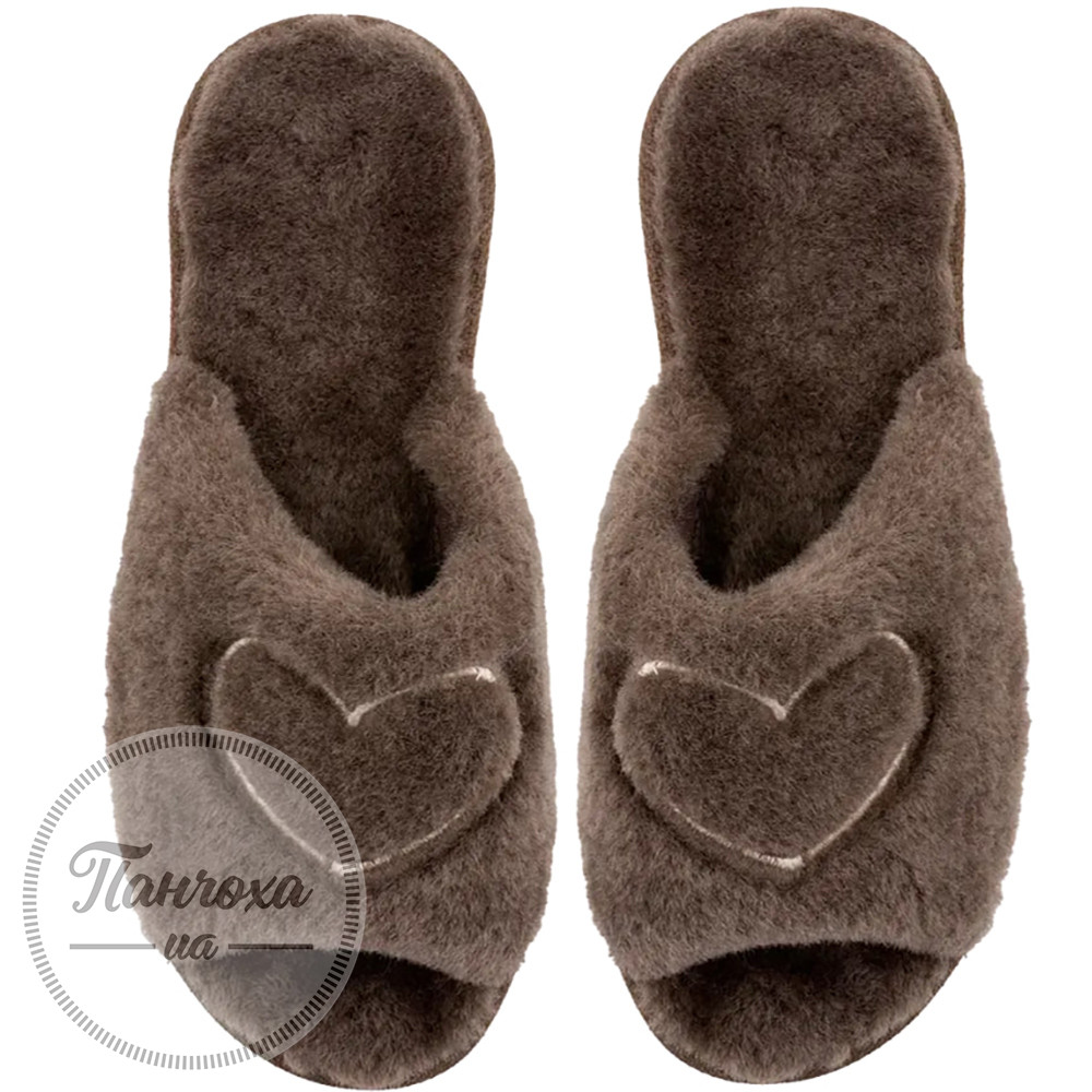 Жіночі відкриті капці БЕЛСТА з хутра, прикрашені вишивкою у вигляді сердечка.