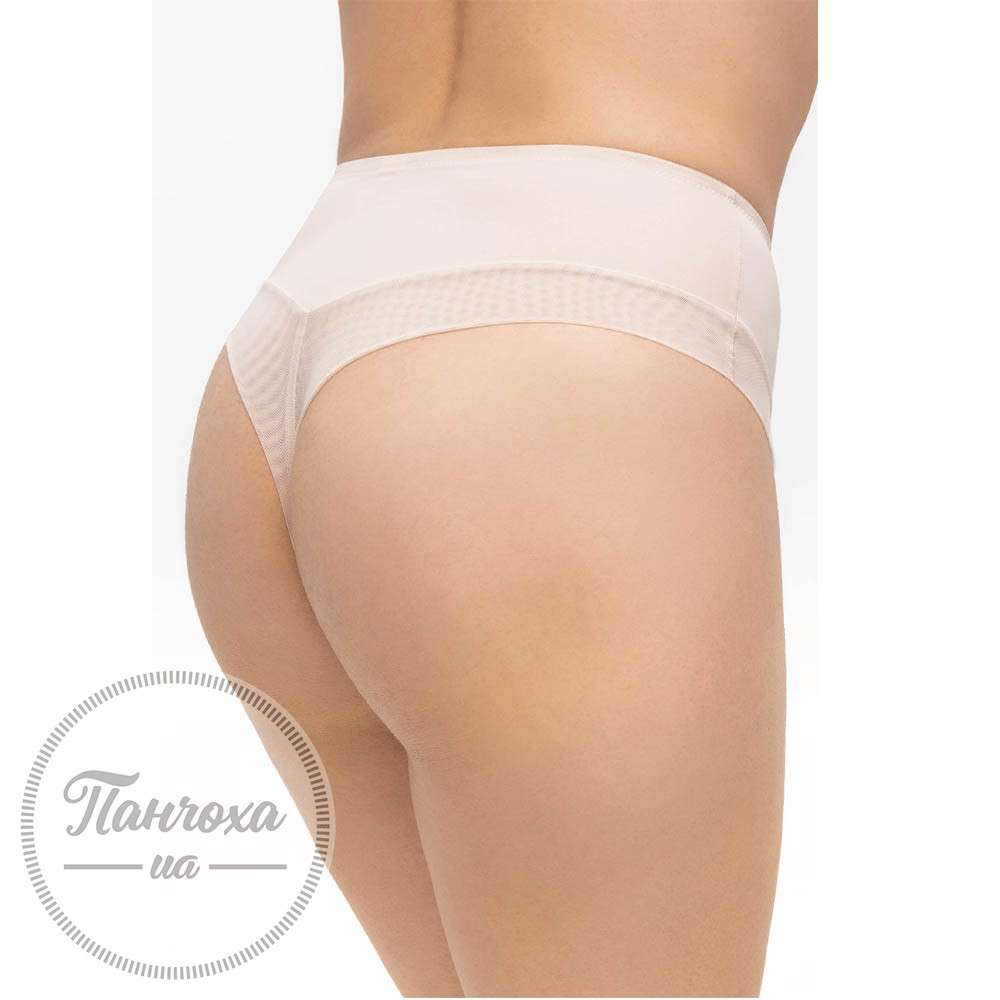 Комфортні моделюючі трусики-стрінги із високою посадкою виготовлені із екологічних та безпечних для жінок та навколишнього середовища матеріалів:еластичного трикотажного полотна – мікрофібри, сітчастого полотна та еластичної тасьми по талії латвійського виробництва.