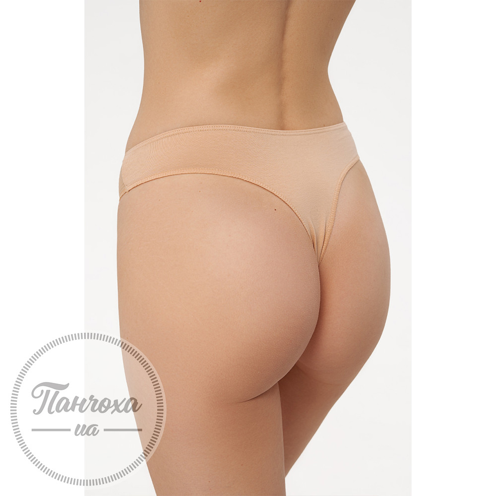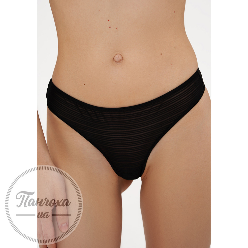 Трусики жіночі стрінги, перед трусиків виконаний з декоративного мереживного полотна в полоску, задня частина -бавовняна.