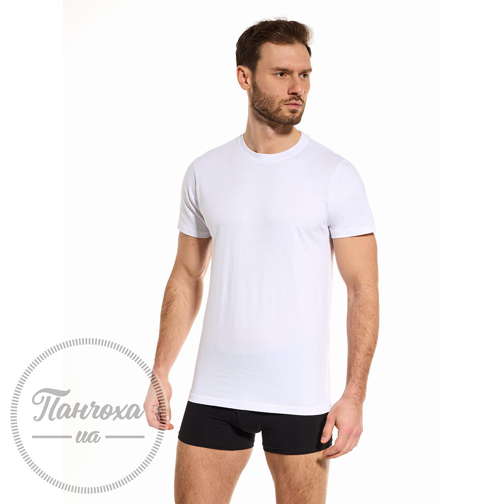 Практичная и комфортная мужская футболка с короткими рукавами и округлым вырезом горловины.