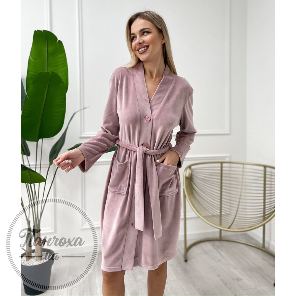 Велюровый халат с двумя карманами.