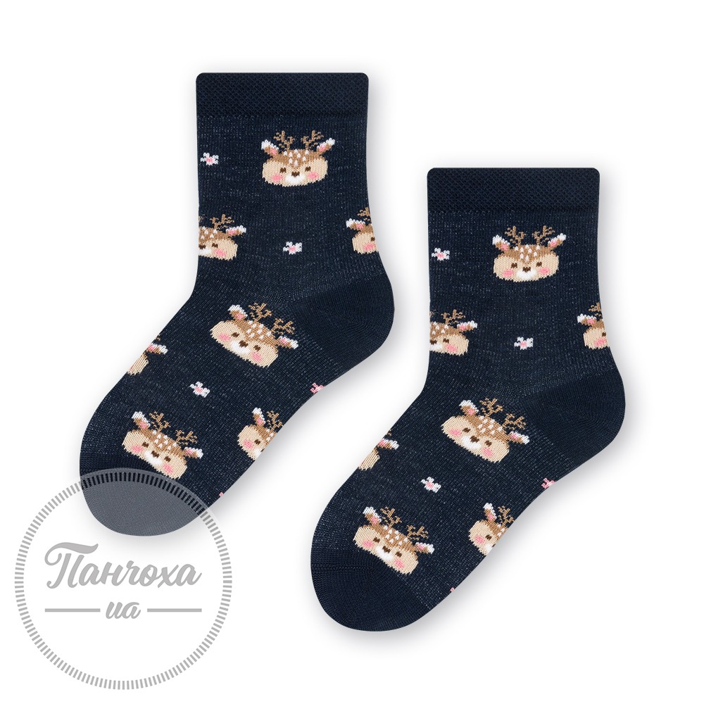 Детские носки, изготовленные из высококачественного хлопка, украшены изображением оленя, комфортная неперетискаюча резинка, плоские швы.