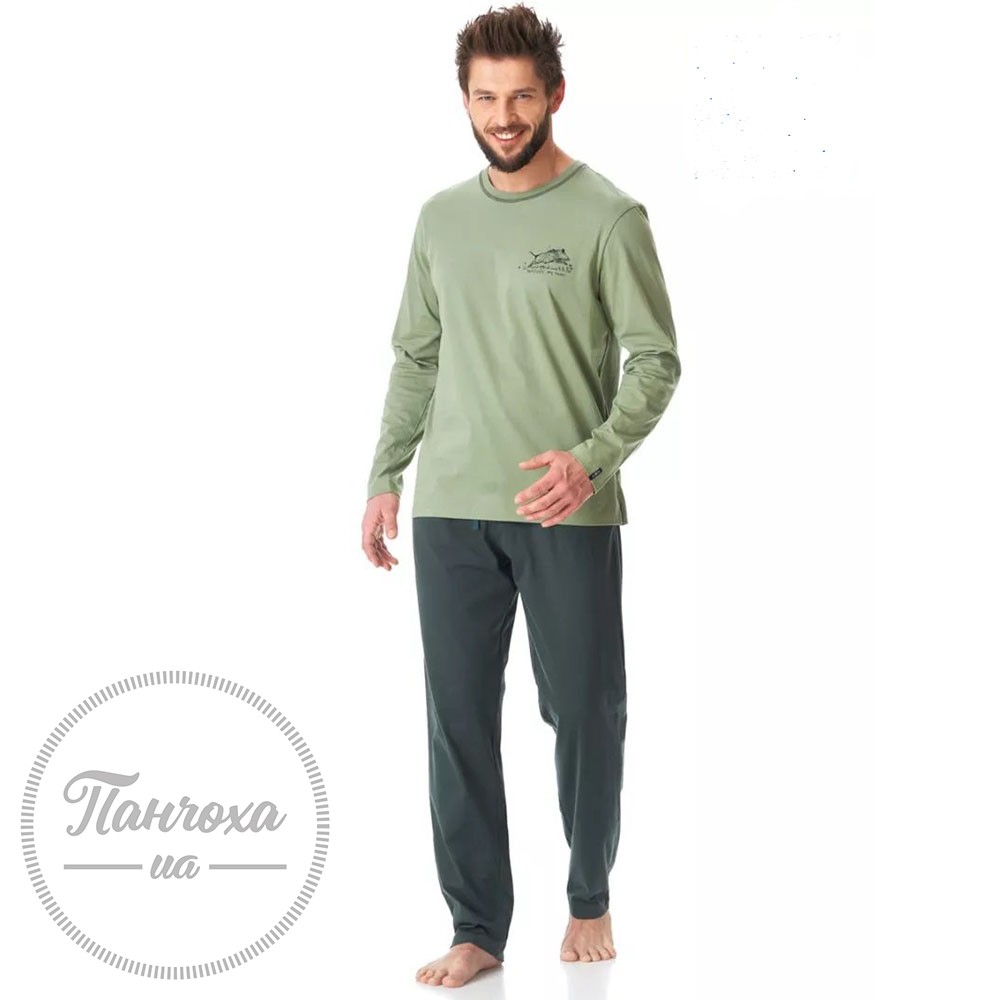 Мужская пижама, изготовленная из высококачественного хлопка. В комплект входит: футболка с длинным рукавом и брюки свободного кроя.