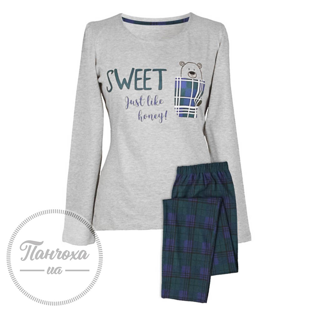 Женская пижама, изготовленная из 100% хлопка, кофта с длинными рукавами с принтом "мишка" на накладной кармана, брюки свободного кроя. Отличный вариант для сна или как домашняя одежда!